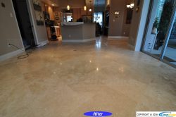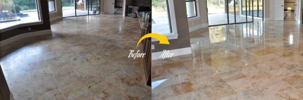 Then there is also damage that may occur if you hire a company that does not specialize in stone cleaning and refinishing, such as in the pictures shown. The new owners of this home had hired another company to clean their travertine floors. The owner had to stop the technician half way through cleaning because what she was witnessing. Mind you this was a company touting 20 years’ experience. The tool they were using to clean the floor was leaving significant scratching. What is astonishing is the technician didn’t notice the damage he was doing. Clean Image of Orlando was hired to deep clean, refinish and repair the damage that was done. The old saying comes into play here, “it doesn’t matter how long you have been doing it, it’s how long you been doing right”.
