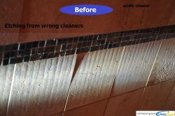 During cleaning, when you see a drastic difference, this is often due to residues on the stone attracting soil. If a higher gloss level is desired after cleaning, Clean Image of Orlando would recommend diamond refinishing.