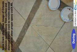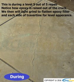 Not all Crack repairs are the same. As you can see in both before pictures, it appears as if someone just smeared dark epoxy over the crack and walked away. We run into this quite frequently. When this was first completed, it probably looked ok from a distance, however it will quickly turn into what you see, a repair that looks worse than the original crack. This is what separates Clean Image from other company’s, as it takes knowledge and time to do it correctly. The key to proper settlement crack repairs is preparation.