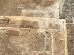Here are some examples of travertine lippage. Tile lippage is where you have significant difference in tile height levels between adjacent tiles. This is due to improper installation. This can possibly cause a trip and fall issues, cleaning maintenance issues and of course is un slightly.