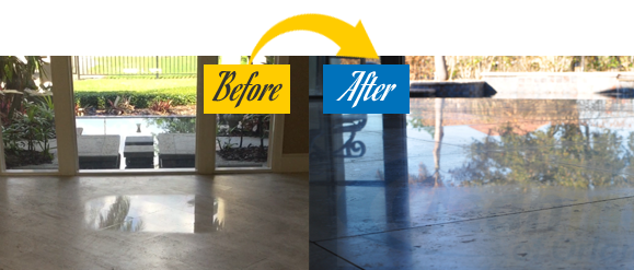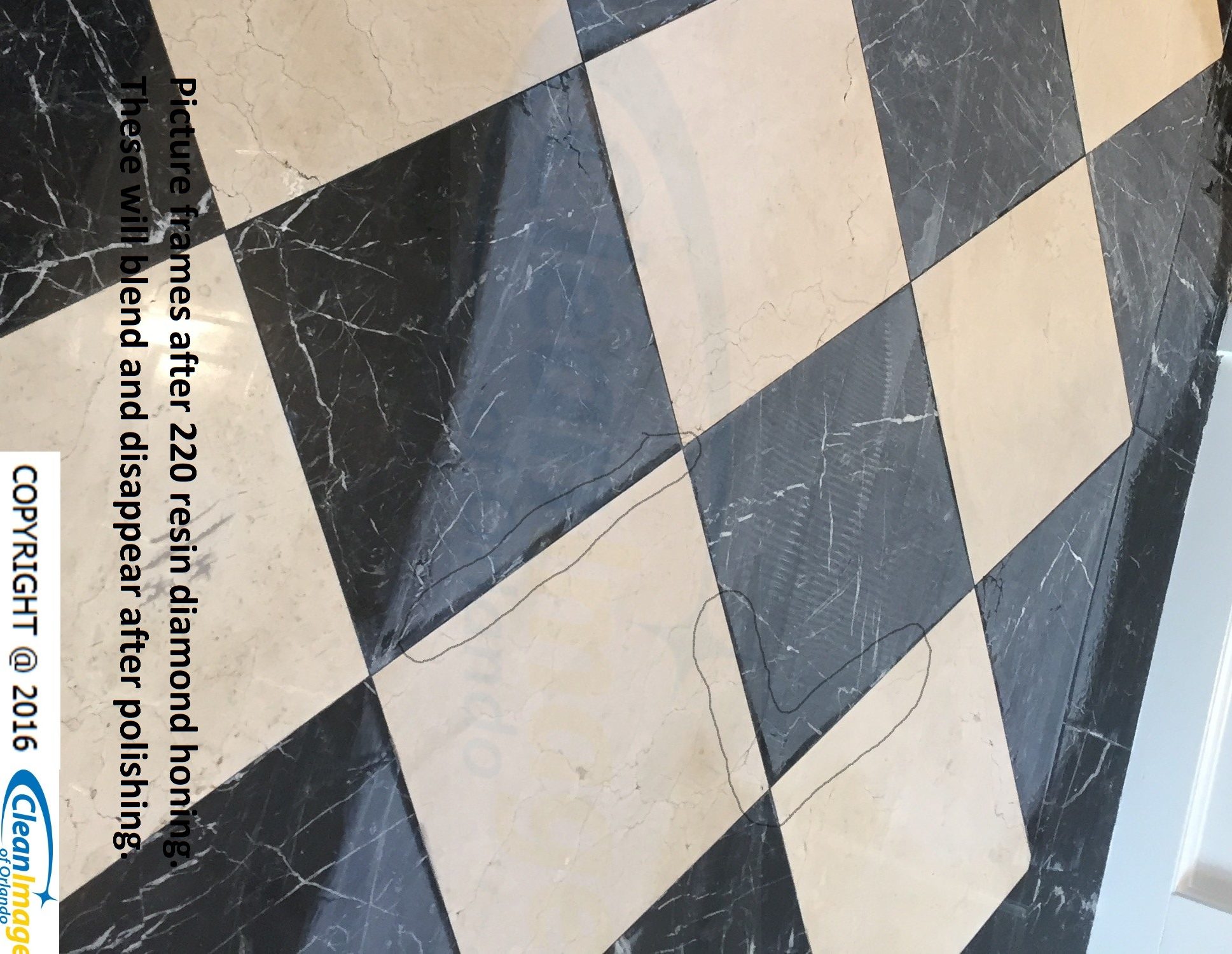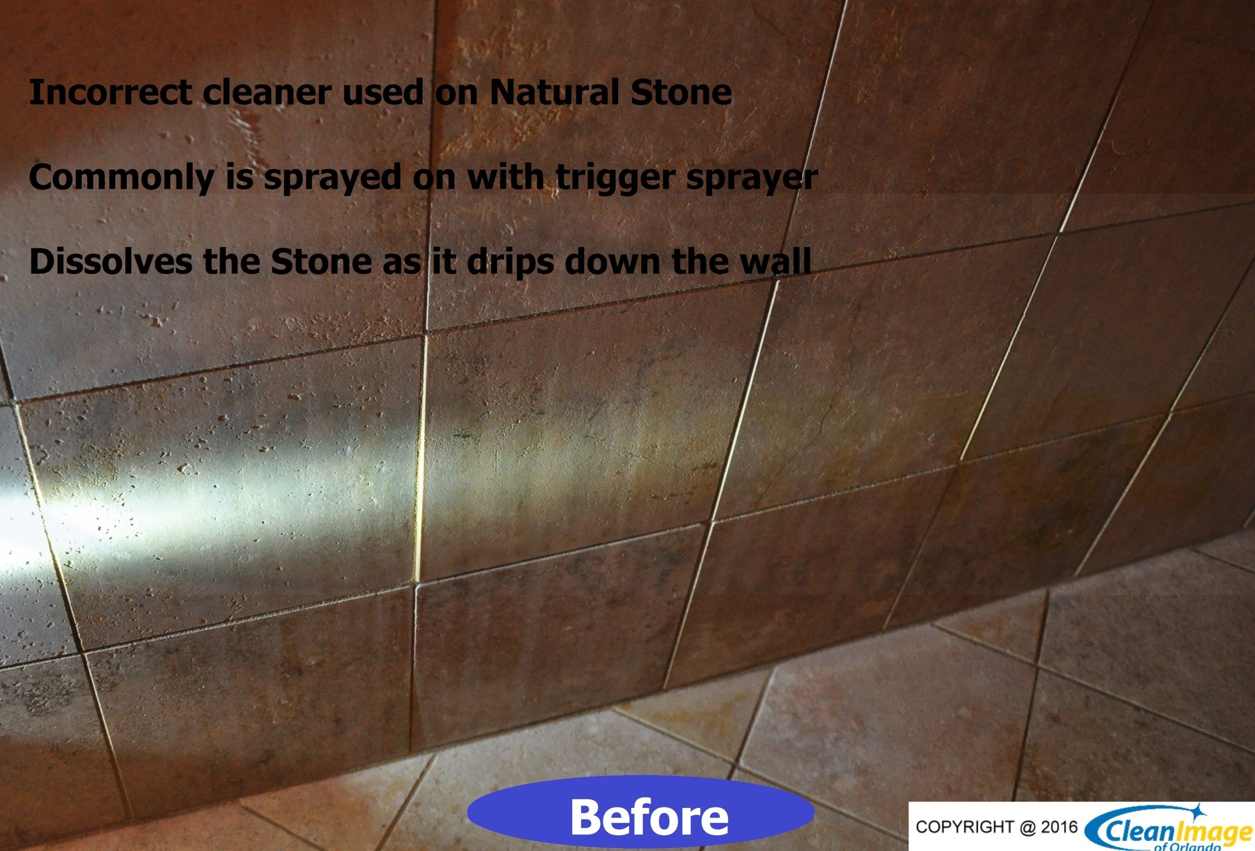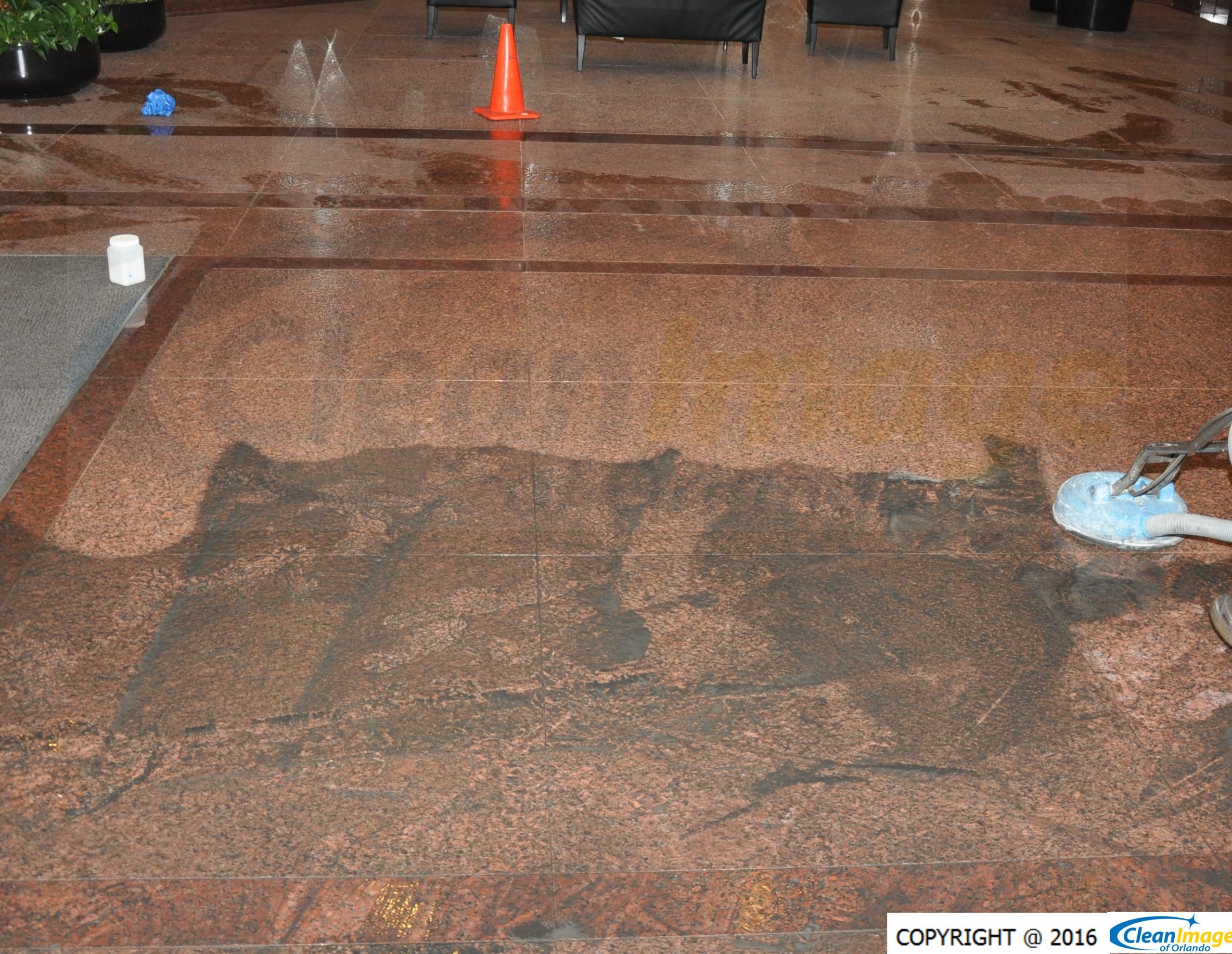 During cleaning, when you see a drastic difference, this is often due to residues on the stone attracting soil. If a higher gloss level is desired after cleaning, Clean Image of Orlando would recommend diamond refinishing.