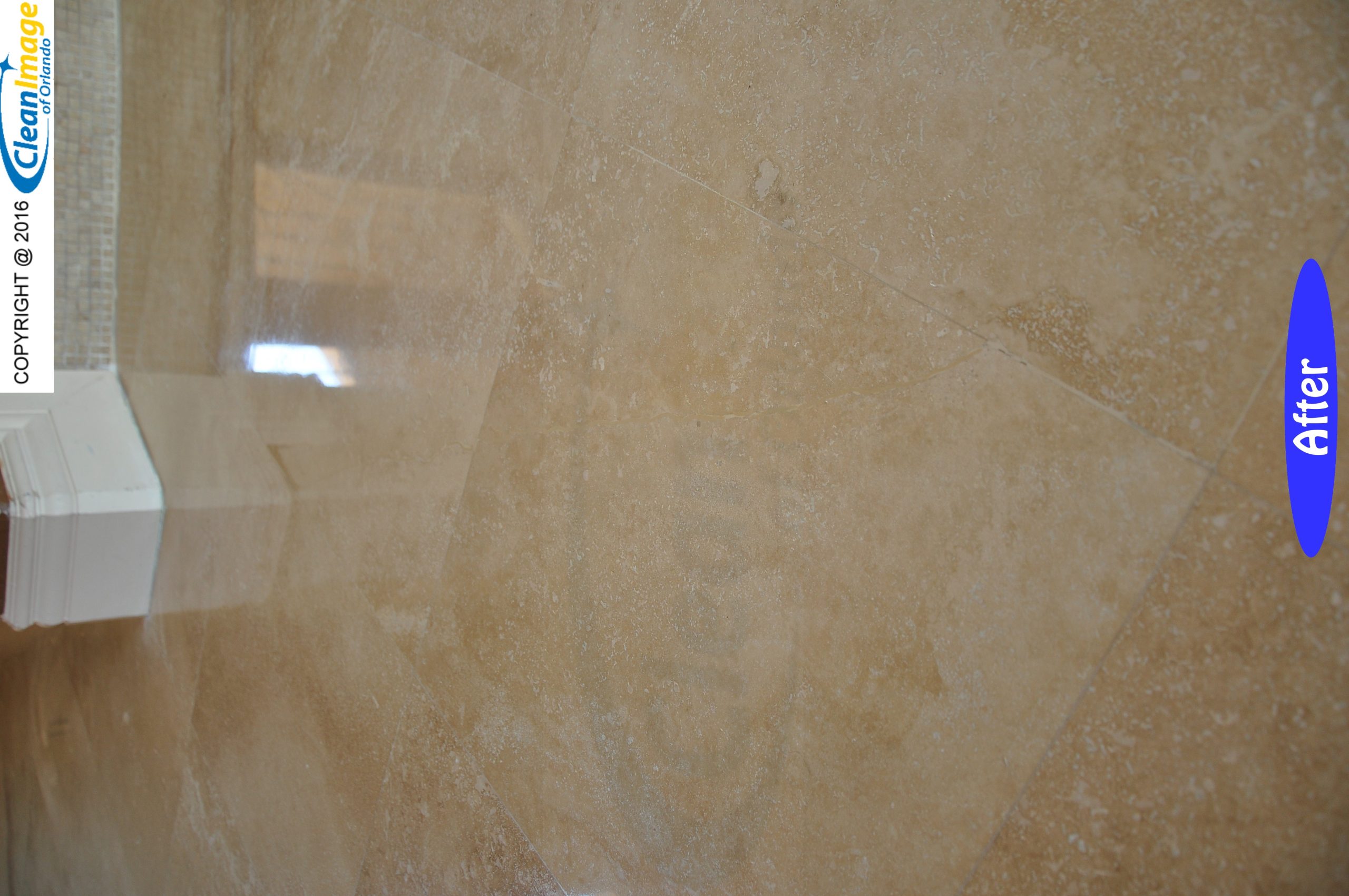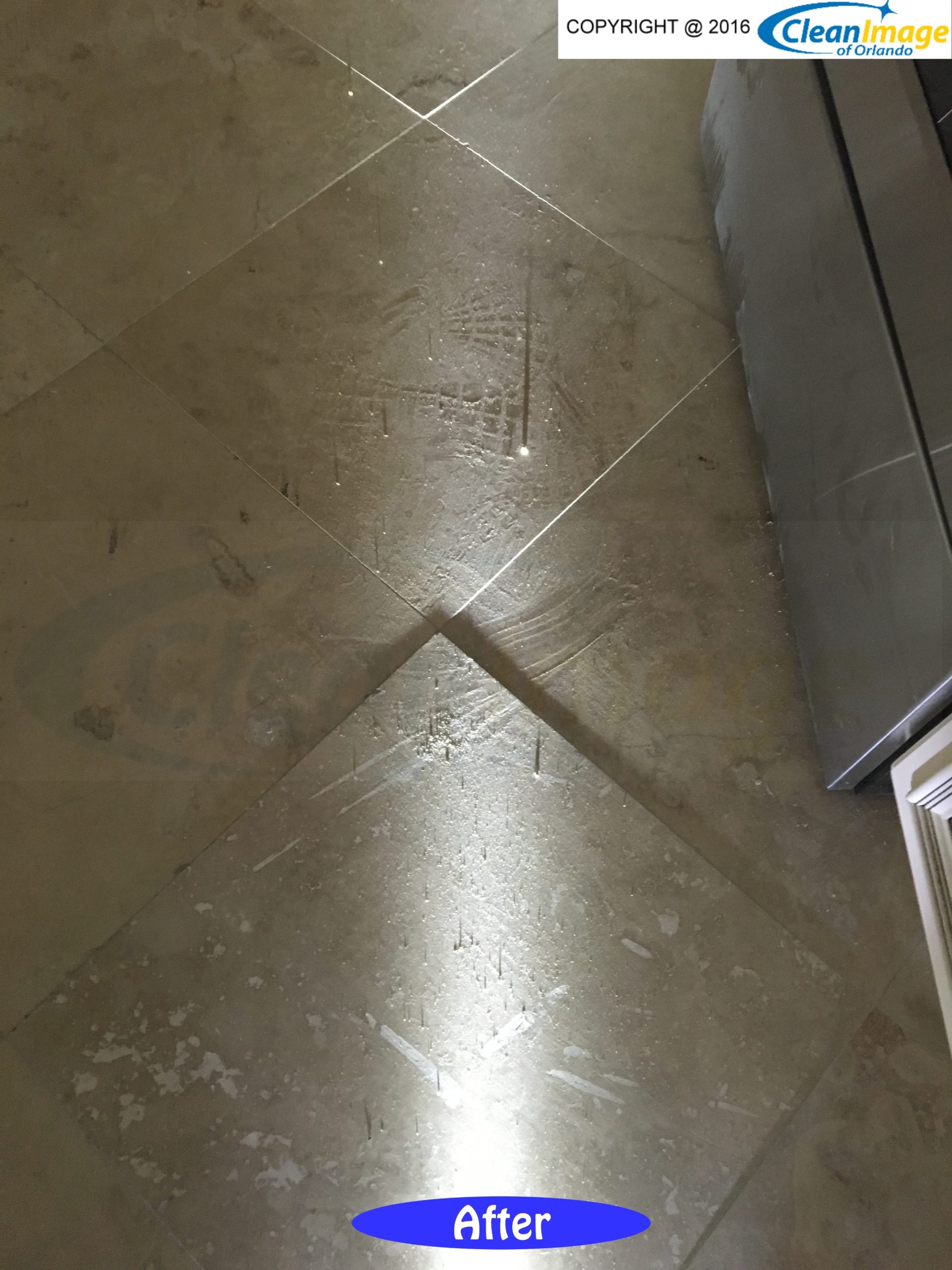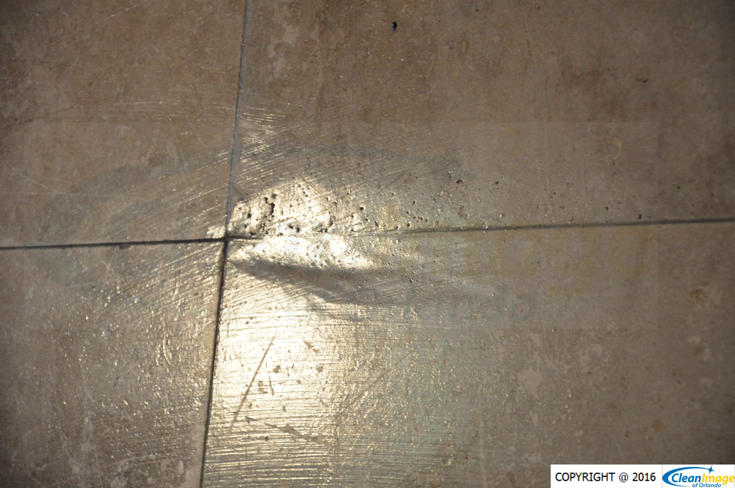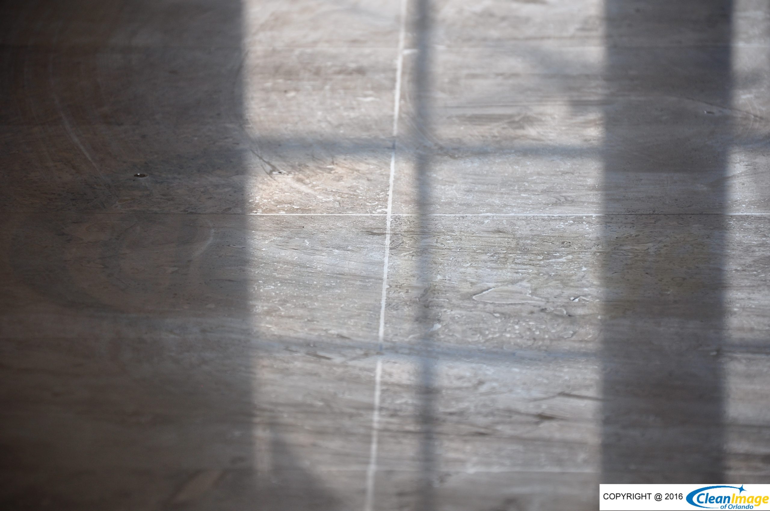 Then there is also damage that may occur if you hire a company that does not specialize in stone cleaning and refinishing, such as in the pictures shown. The new owners of this home had hired another company to clean their travertine floors. The owner had to stop the technician half way through cleaning because what she was witnessing. Mind you this was a company touting 20 years’ experience. The tool they were using to clean the floor was leaving significant scratching. What is astonishing is the technician didn’t notice the damage he was doing. Clean Image of Orlando was hired to deep clean, refinish and repair the damage that was done. The old saying comes into play here, “it doesn’t matter how long you have been doing it, it’s how long you been doing right”.