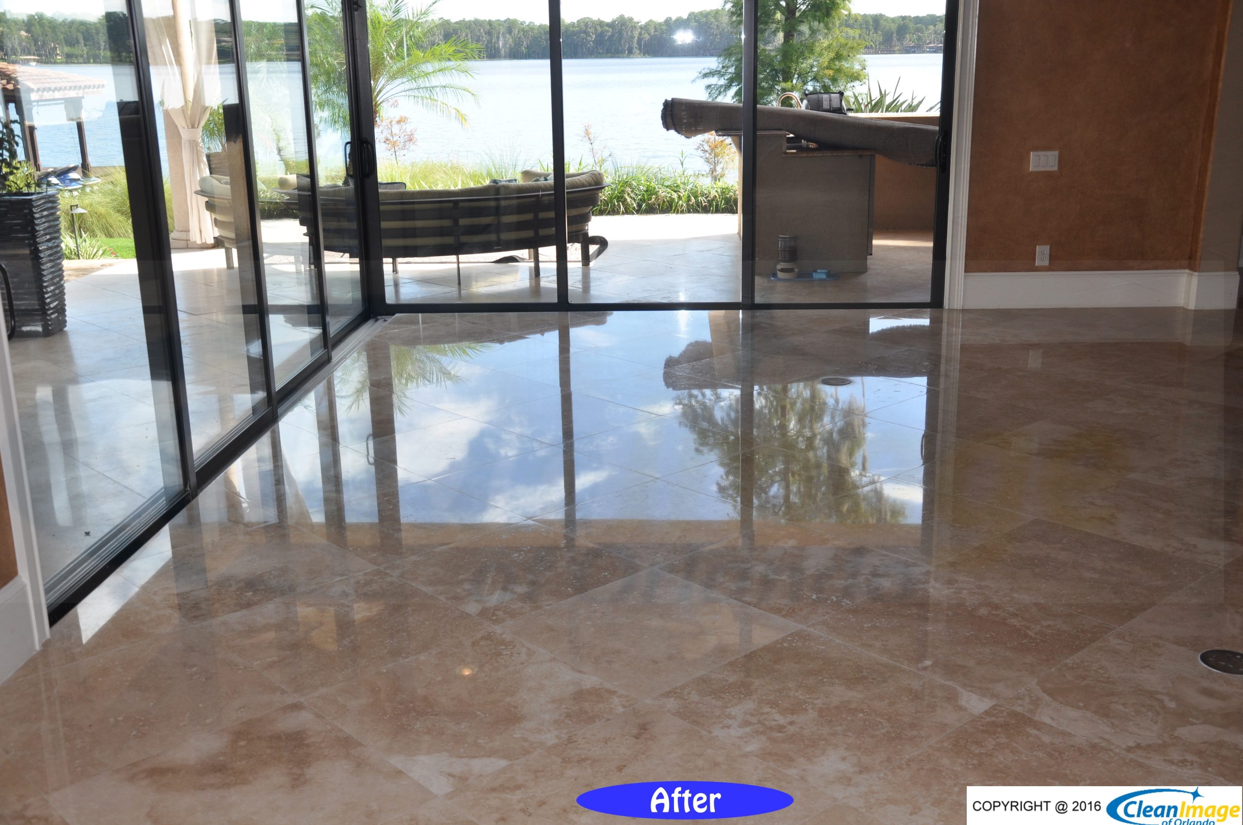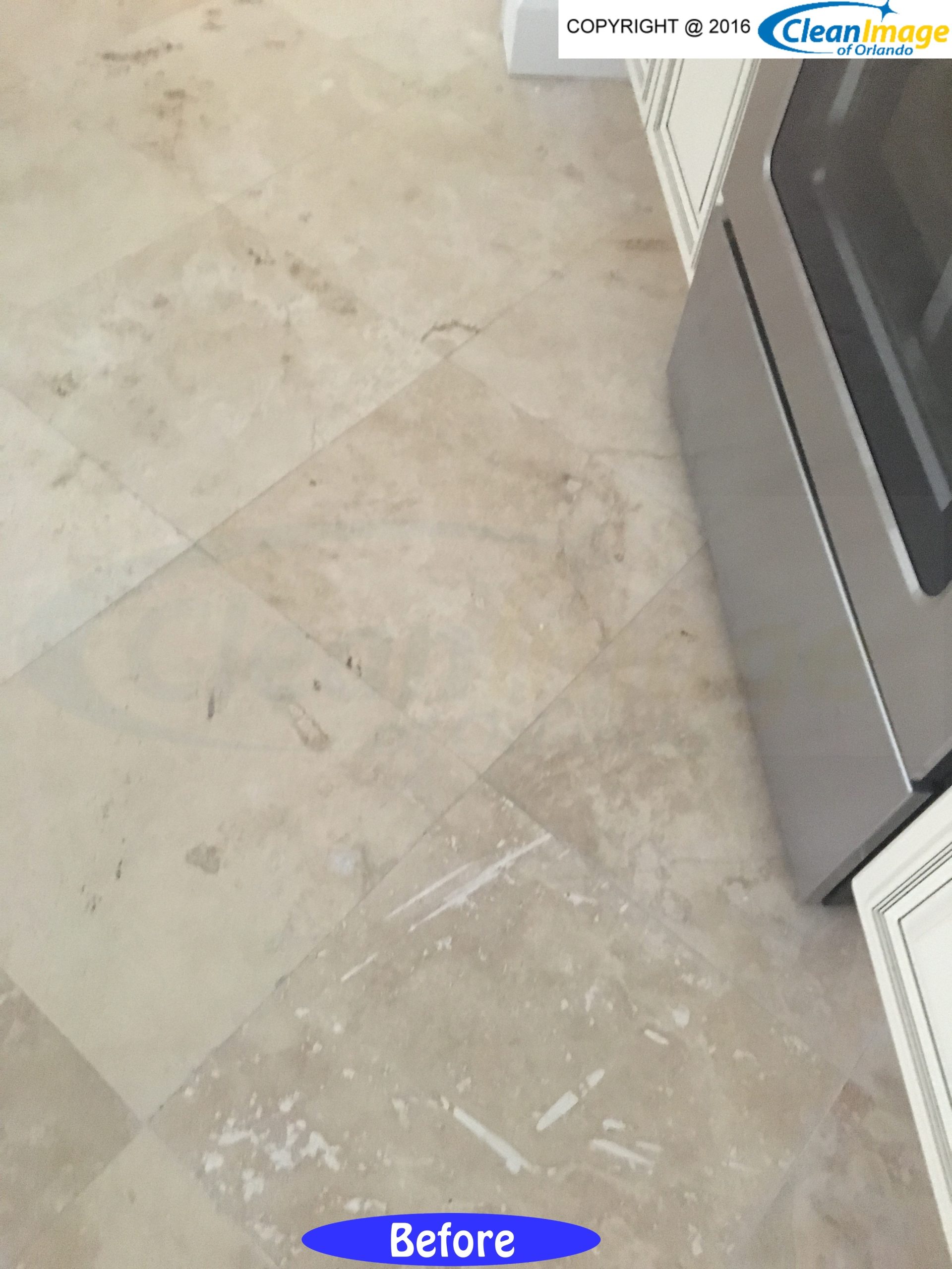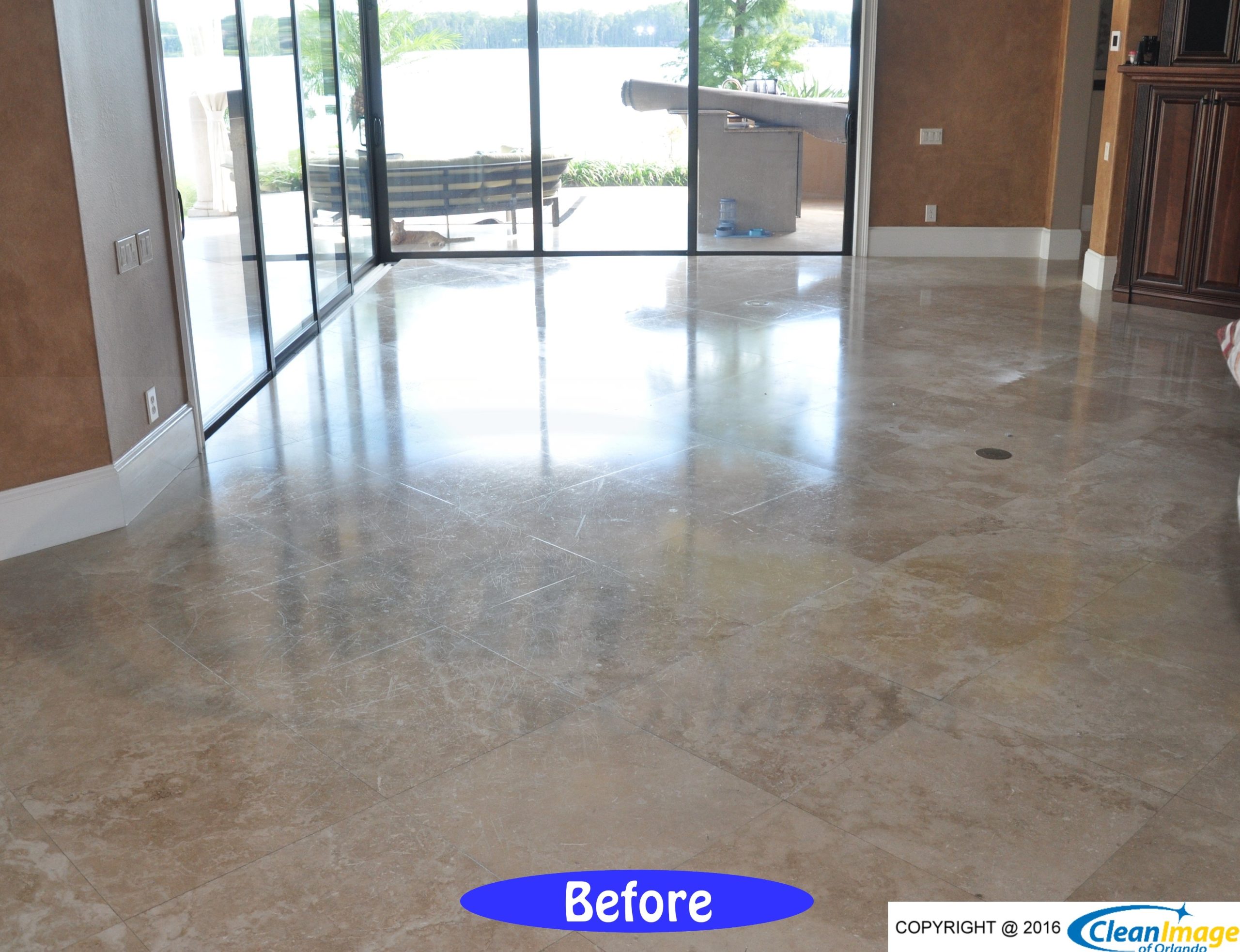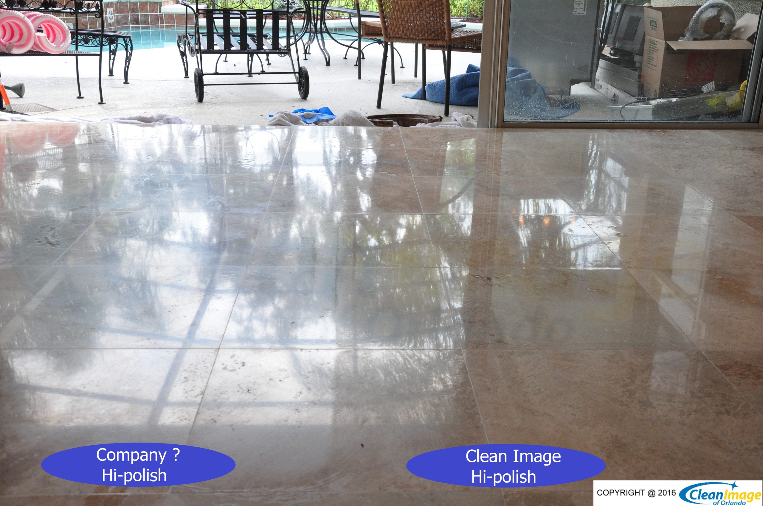 Then there is also damage that may occur if you hire a company that does not specialize in stone cleaning and refinishing, such as in the pictures shown. The new owners of this home had hired another company to clean their travertine floors. The owner had to stop the technician half way through cleaning because what she was witnessing. Mind you this was a company touting 20 years’ experience. The tool they were using to clean the floor was leaving significant scratching. What is astonishing is the technician didn’t notice the damage he was doing. Clean Image of Orlando was hired to deep clean, refinish and repair the damage that was done. The old saying comes into play here, “it doesn’t matter how long you have been doing it, it’s how long you been doing right”.