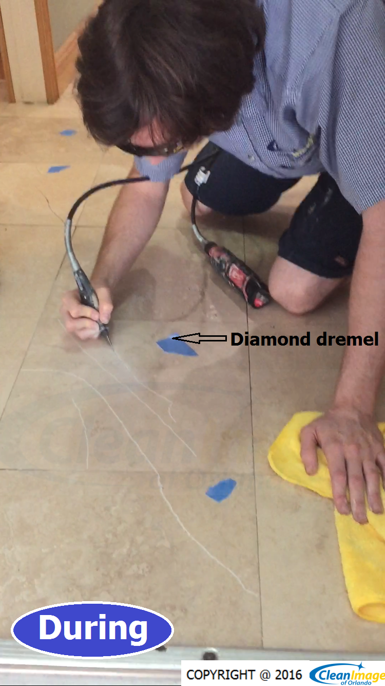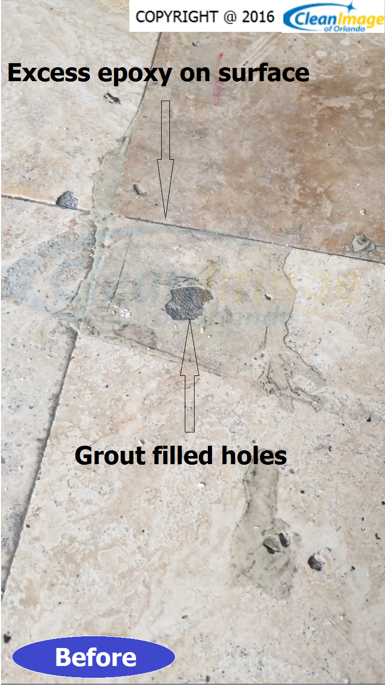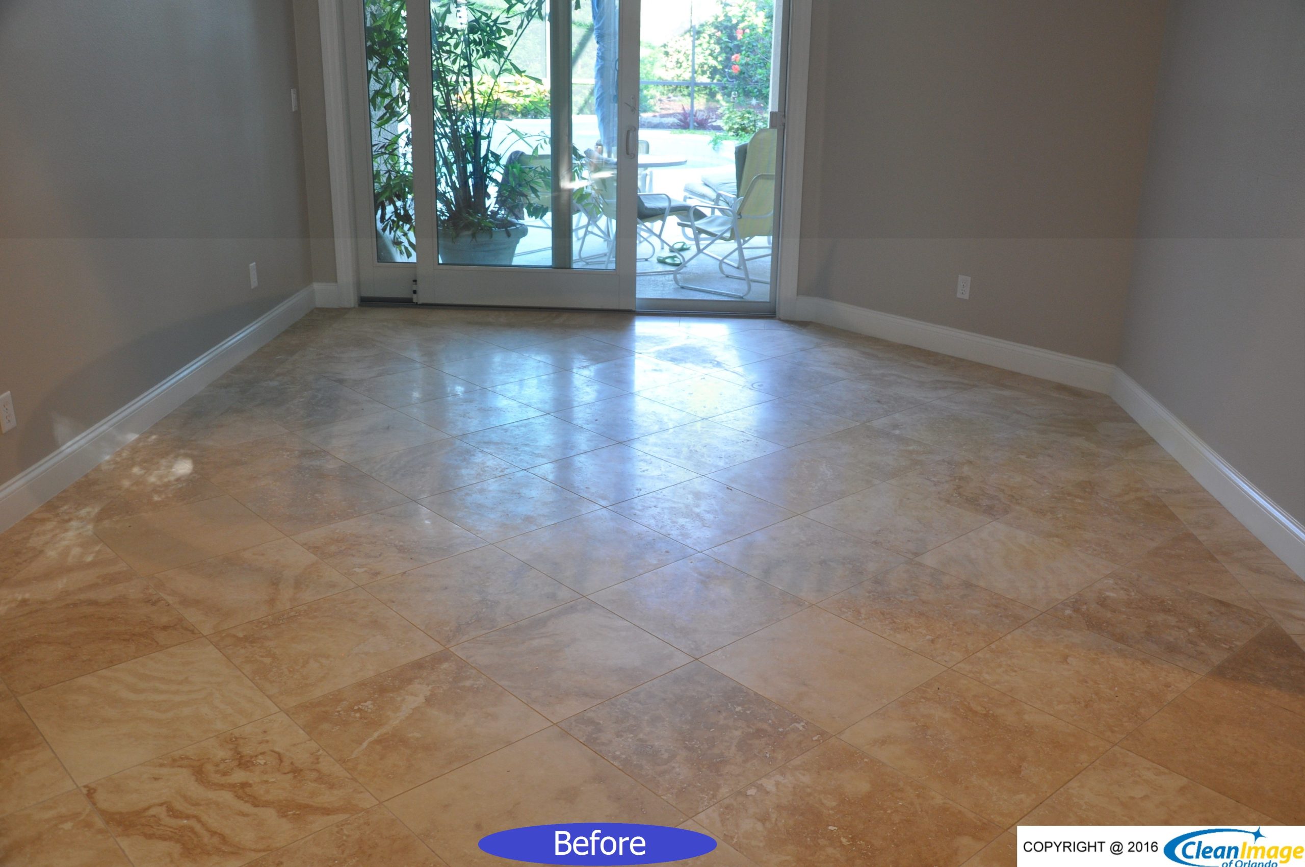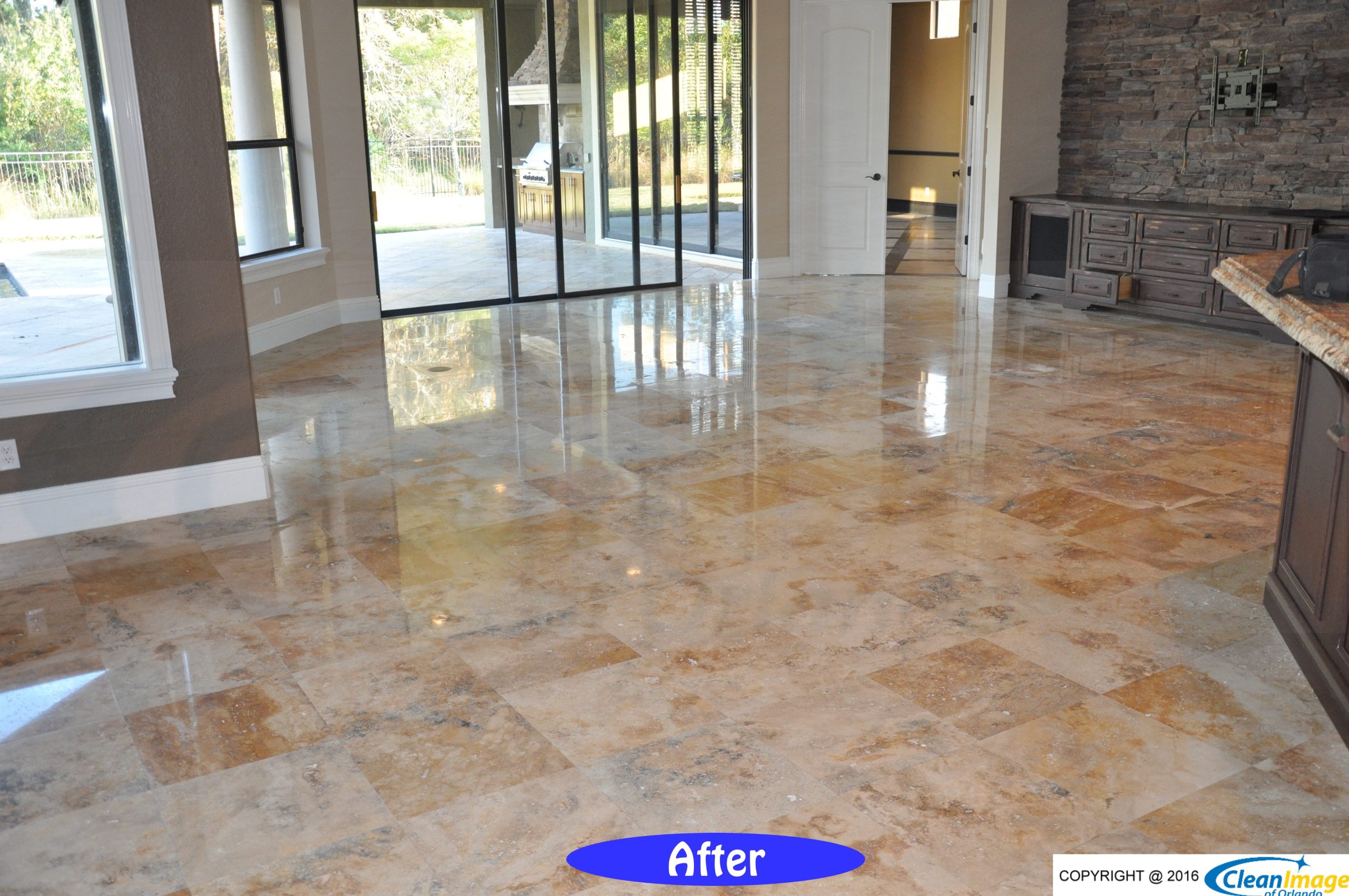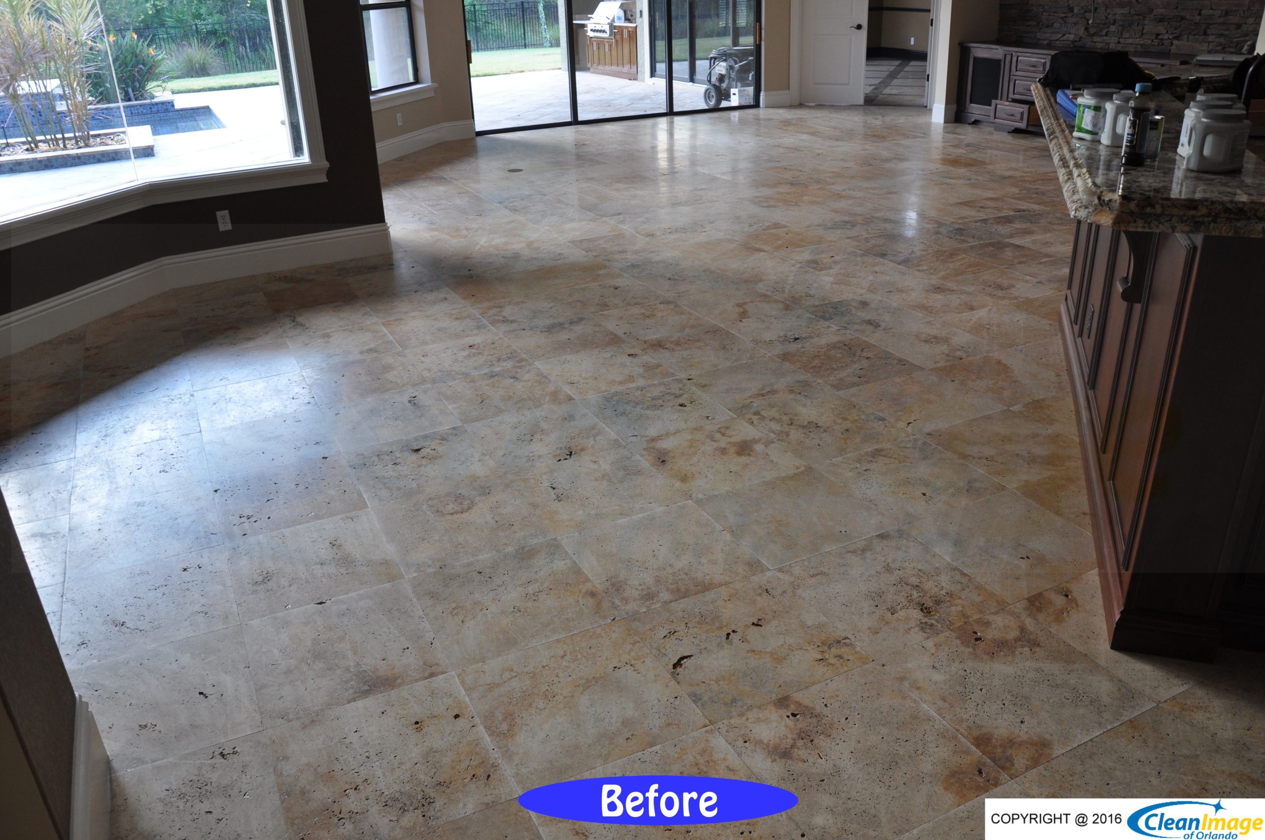 Then there is also damage that may occur if you hire a company that does not specialize in stone cleaning and refinishing, such as in the pictures shown. The new owners of this home had hired another company to clean their travertine floors. The owner had to stop the technician half way through cleaning because what she was witnessing. Mind you this was a company touting 20 years’ experience. The tool they were using to clean the floor was leaving significant scratching. What is astonishing is the technician didn’t notice the damage he was doing. Clean Image of Orlando was hired to deep clean, refinish and repair the damage that was done. The old saying comes into play here, “it doesn’t matter how long you have been doing it, it’s how long you been doing right”.