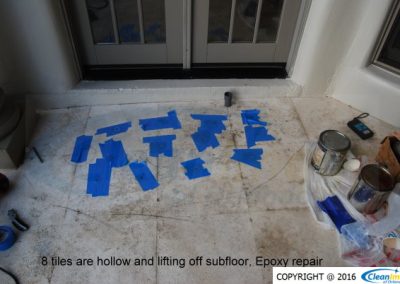 Additionally we also repaired all the damaged tile edges around the missing tile and repaired all the settlement cracks from the original movement.