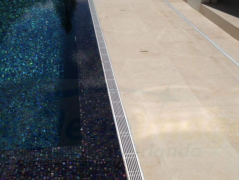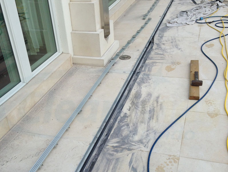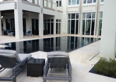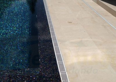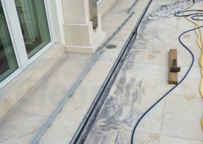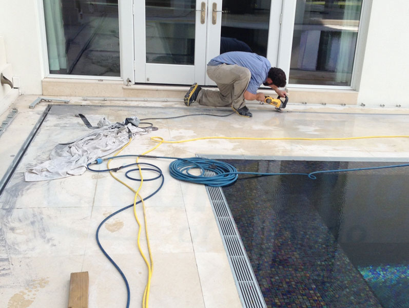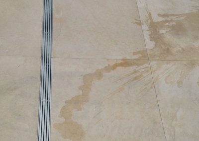 We removed the top of the drain and using our floor grinders re-pitched the limestone so that it would drain into the outside drain. We refinished the limestone and sealed with Dry Treat SK-40, a consolidating sealer designed to consolidate, strengthen the limestone and resist the pool’s salt from eroding its surface.