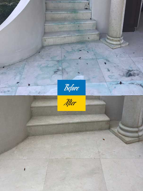 Heavy biological growth such as algae, mildew, and mold buildup can occur on shaded or damp paver surfaces. Mold and algae contamination not only affect appearance but can also make surfaces slippery. Having your Limestone Pavers properly Cleaned and Sealed will help mitigate future contamination.