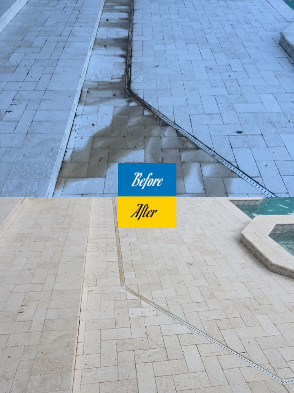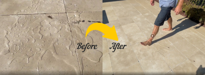 At Clean Image, we make sure your limestone pavers stay both beautiful and safe to walk on. Depending on the surface texture, installation, and environmental conditions, we select either an impregnating sealer or a film-forming sealer to achieve the best protection and slip resistance. Impregnating sealers penetrate below the surface to provide invisible protection without changing the stone’s natural look or traction, while film-forming sealers create a protective coating that enhances color and adds durability. Our goal is to ensure that when we’re finished, your limestone pavers are clean, protected, and safe underfoot—even when wet.