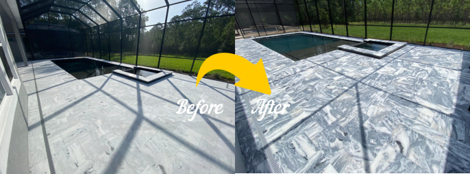 Clean Image of Orlando expertly repairs damaged, cracked, or pitted marble pavers by filling holes, chips, and voids with color-matched stone fillers designed specifically for marble. Our process blends the repairs seamlessly with the surrounding surface, restoring both the look and integrity of the stone. Once complete, the area is refinished for a smooth, natural appearance that’s durable and easy to maintain.