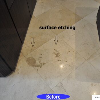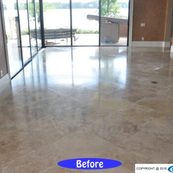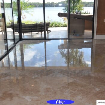 Then there is also damage that may occur if you hire a company that does not specialize in stone cleaning and refinishing, such as in the pictures shown. The new owners of this home had hired another company to clean their travertine floors. The owner had to stop the technician half way through cleaning because what she was witnessing. Mind you this was a company touting 20 years’ experience. The tool they were using to clean the floor was leaving significant scratching. What is astonishing is the technician didn’t notice the damage he was doing. Clean Image of Orlando was hired to deep clean, refinish and repair the damage that was done. The old saying comes into play here, “it doesn’t matter how long you been doing it, it’s how long you been doing right”.